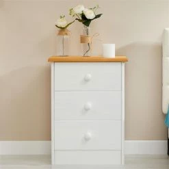 IDIMEX Nachttisch RONDO Mit 3 Schubladen, Kiefer In Weiß/braun